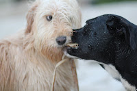 There are about a dozen regulars at the beach each night, with a fairly clear ranking of who annoys whom. Bee, here, is Penny's nemesis. Compared to the other dogs, Penny and Bee rough-house (or is that ruff-house?) it pretty good.